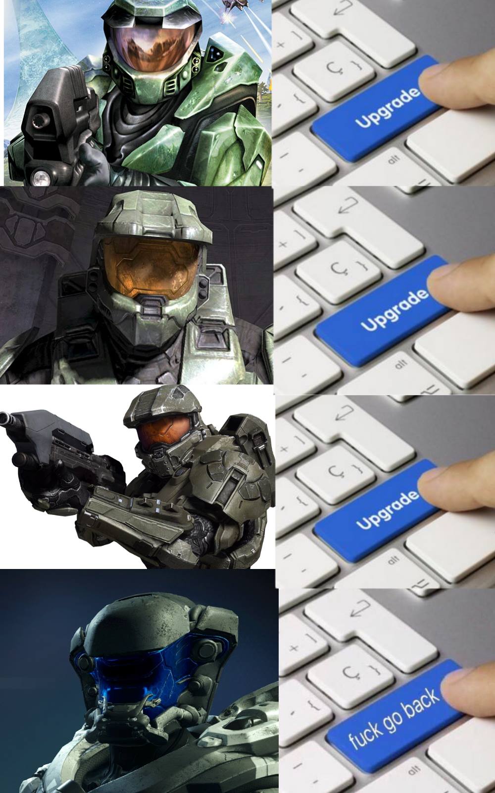 Memes de halo 4 en español. 2 461 me gusta 7 personas están hablando de esto. Halo es una de las sagas que se ha credo un puesto en el mercado de los video juegos desde el que reina sobre juegos de un tipo similar. Memes de halo en español parte 1. Tu dosis diaria de humor. Tras los sucesos de halo 3 el jefe maestro regresará con el propósito de demostrar las cualidades no solo de guerrero sino también de líder que posee en la versión halo 4 para pc en español gratis y nuevamente medirá sus fuerzas tanto contra el covenant como frente a otros nuevos enemigos. En esta cuarta versión los usuarios podrán viajar al planeta de los forerunners conocidos. Mira vota y comparte los mejores memes y gifs de halo en español.